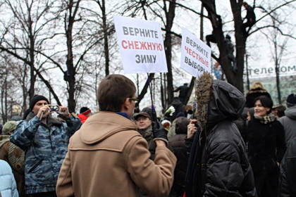 Заявка на митинг на площади Революции 10 декабря была подана, как это и предусмотрено по закону, за 15 дней — т.е. в то время, когда еще никому и в голову не приходило, что речь пойдет о собрании десятков тысяч людей. Оппозиционная практика 2006-2011 гг. приучила всех к тому, что многотысячные митинги — это результат долгой и тщательной агитации с непременными вложениями в рекламу на радио и в значительные тиражи газет или листовок. Даже при этих условиях самые успешные протестные акции в Москве собирали не более 5-7 тысяч человек.