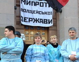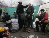 В момент, когда разнеслась новость о подписании соглашения между Януковичем, оппозицией и тройкой международных переговорщиков, на улице начали запускать фейерверки. Четверо медиков вышли из передвижного медицинского пункта, располагавшегося в здании Киевской городской госадминистрации (далее — КГГА), вдохнуть свежего воздуха. Там их и запечатлел фотоаппарат моего знакомого. Видно, что врачи еще не совсем осознали случившееся, а у анестезиолога Ирины (на снимке она слева) на глазах выступили слезы.