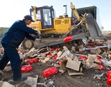 Это действительно уже стало похоже на войну. Если это сводки с полей, то скорее с полей битвы. Только если раньше бились за урожай, то теперь — против. В Самарской области сожгли 114 тонн свинины, в Белгородской катком раздавили и закопали для верности в землю 10 тонн сыра. На белорусской границе спасся бегством грузовик с санкционными томатами — интересно, стреляли ли в спину беглецу? А вот в Питере таможня медлит. Свинину уже взяли в плен, но уничтожить никак не могут. В Оренбурге та же картина: 20 тонн латвийского сыра не отдает на утилизацию непонятливая таможня.